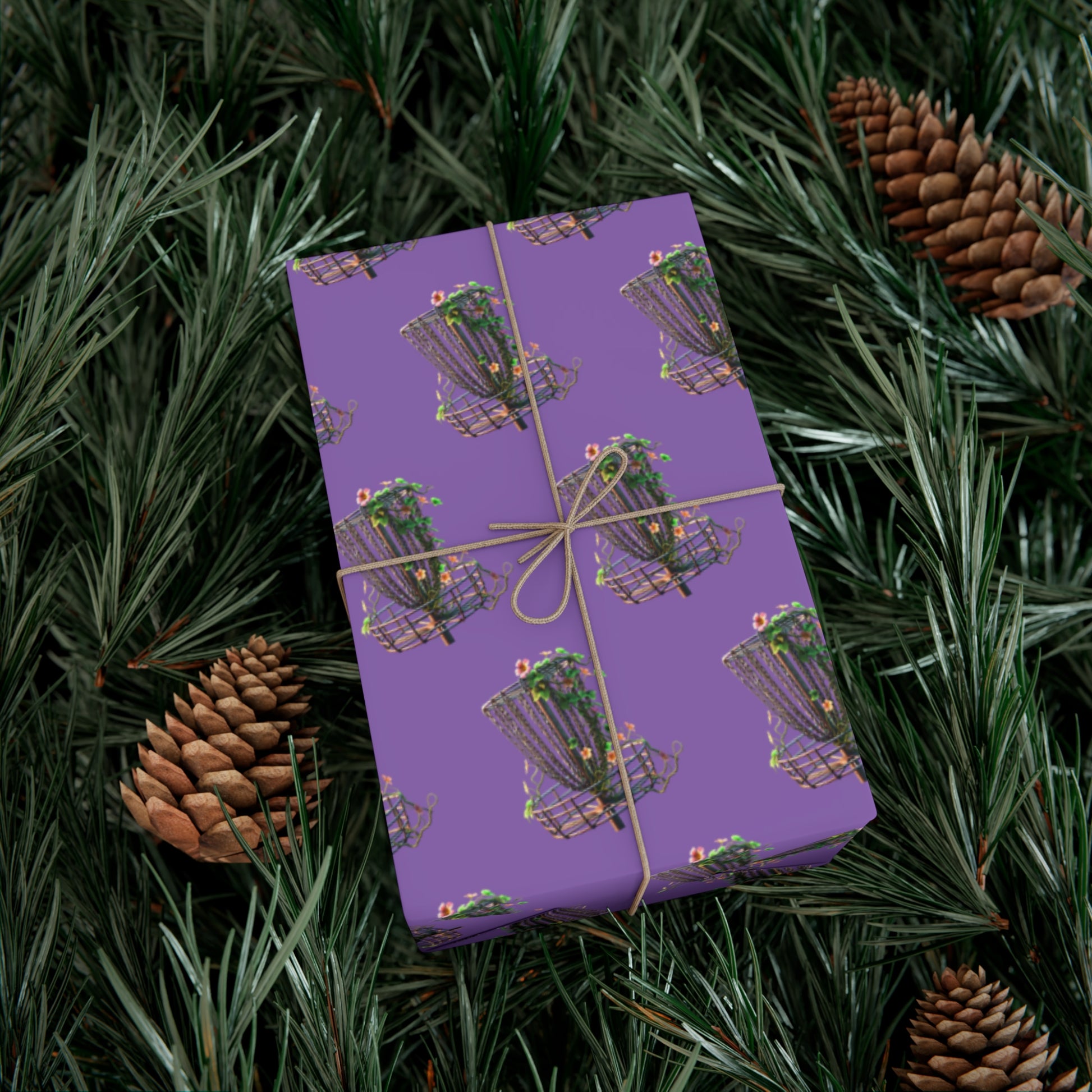 Floral Disc Golf Gift Wrapping Paper Purple Botanical Disc Golf Basket Gift Wrap